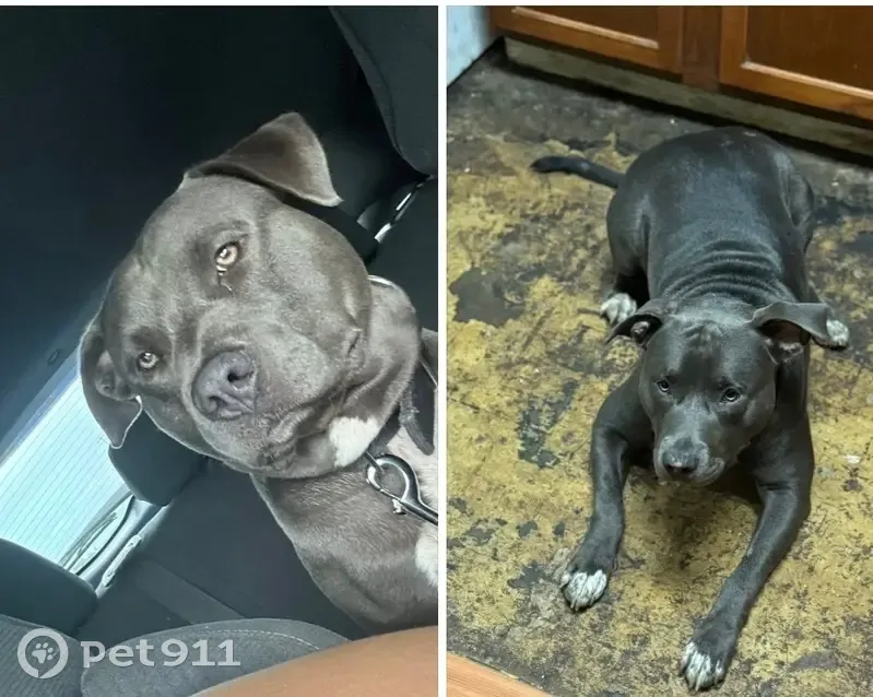 Tyson is a Gray (blue) pitbull, he has on a thick black collar that has a United States flag on it that is worn a little bit, he has white on his paws, chest, and a white patch around his neck area. He’s very friendly and likes to walk, he went for a walk on the block which is normal for him but he never came back. We are thinking he got too close to the end of the block and someone grabbed him. All the neighbors know him and we live on a dead end so he’s always been the dog on the block since we got him at 7 weeks. Normally he would sit with neighbors or someone would bring him home. He also loves car rides so it’s possible he got into someone’s car.