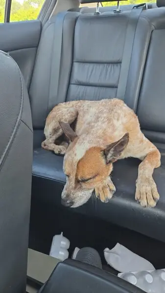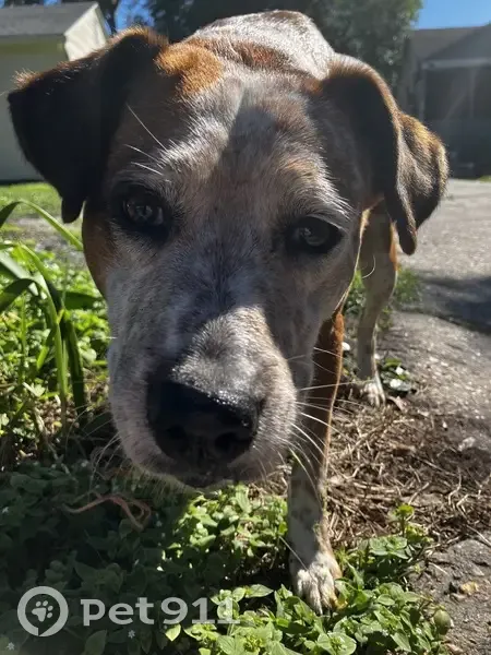 She is a red heeler mix by the looks of her red fur and ticked markings. Very sweet, playful and easy going. I found her roaming my street, going up to random people and even trying to follow people onto the city bus.