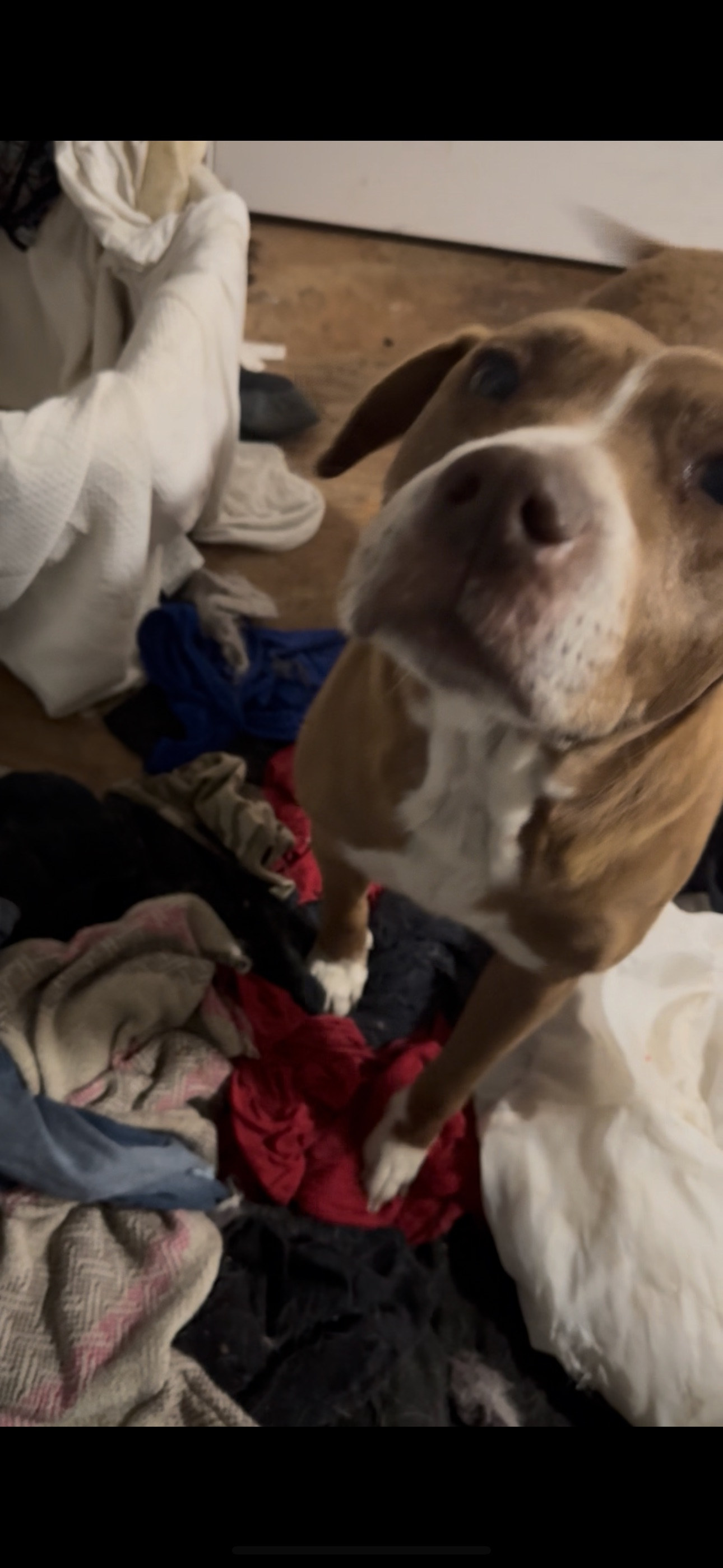 She has a brownish coat color with a white chest and she got white on her toes she very sweet girl found her wandering around the streets no collar brown eyes