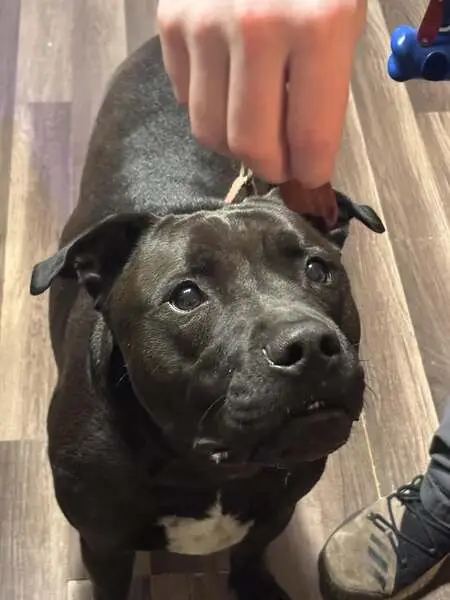 Name: NYRA (male) Breed: PITBULL Description: 8 years old, 75-80 lbs, brown with white markings, blind out of one eye, ears cropped, Friendly to people. Got off his lead no collar on; Last seen 12/11/25 near highway 41 near whiskey throttle and Dixon lane