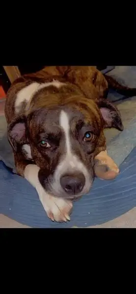 White and brown red nose Pitt, female. Went out to use bathroom and took off across the road and I havent seen her since. Heard that two African American girls was seen putting her in their car at Bridgepoint crossing. She's very friendly but skittish due to last owners beating her.
