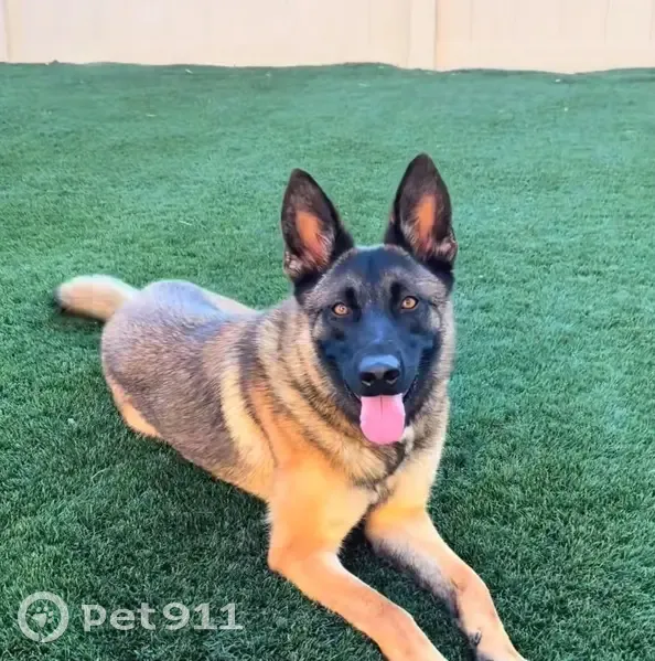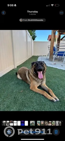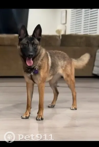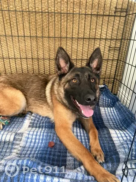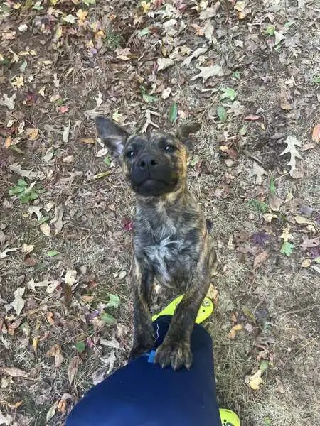 Belgian Shepard mix. Black face mostly brown body with slight black overlay. Fluffy tail with black tip. Super shy with strangers because she’s a rescue! Runs very fast, super sweet, smart, and answers to her name well.