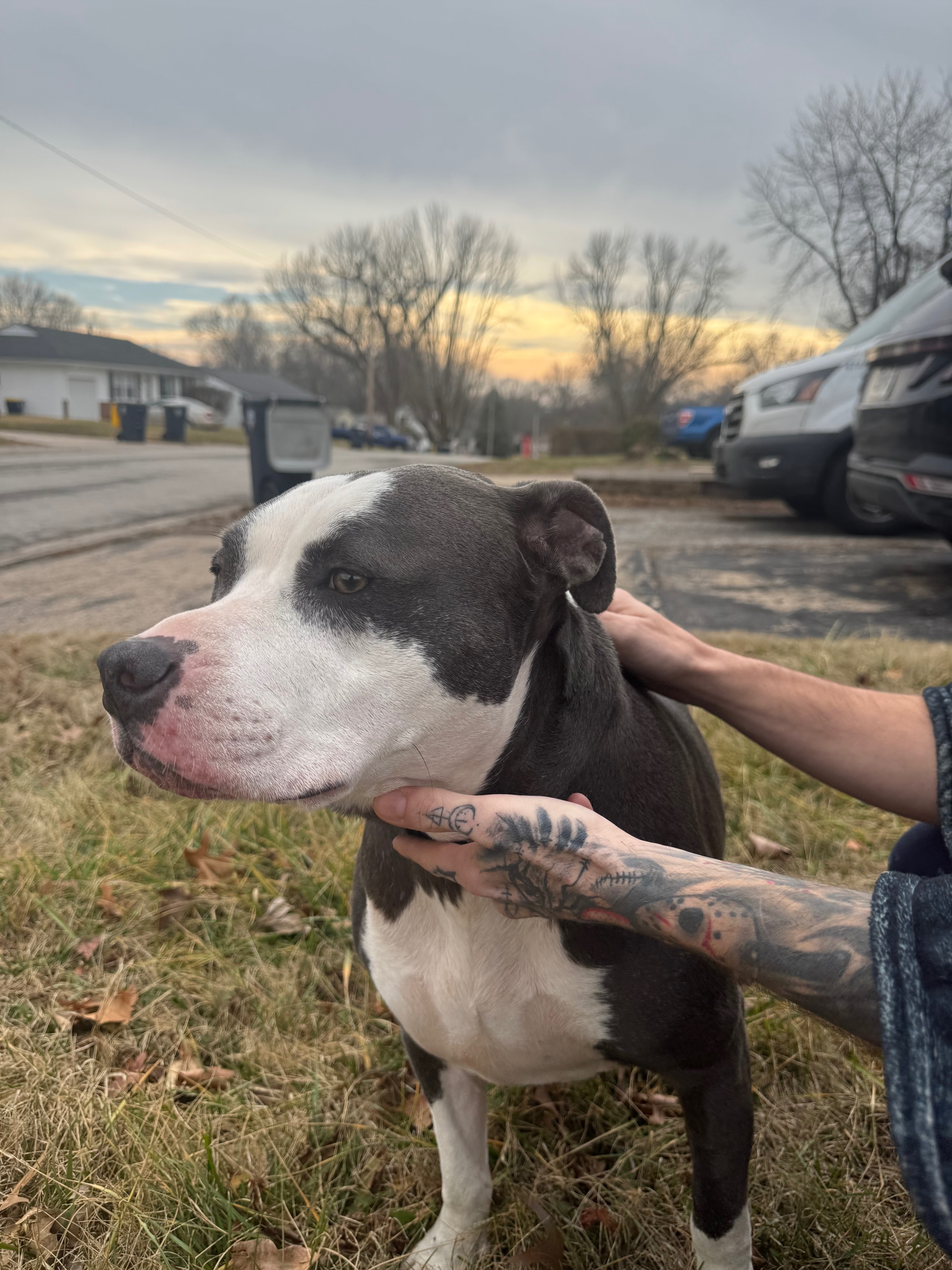 Found dog Kansas City, photo: Sweet Brindle Pitty Found on W 38th St