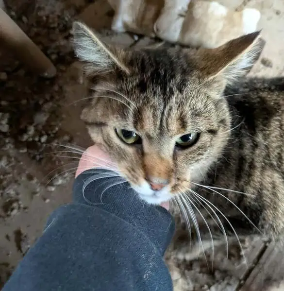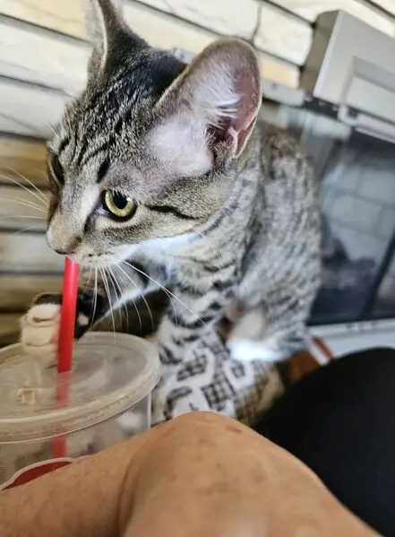 I saw this cat walking across the street slowly at the corner of 46th and Broadway. I pulled over in my vehicle, got out and saw that she was sniffing the tires of a car that was parallel parked. There was some commotion in the street and she did not run away, Which was strange for an outdoor cat. She was not wearing a collar. I beckoned to her and she came to me. I noticed she was very docile and she allowed me to pick her up. So I picked her up and I put her in my car and she let me do that and she sat there. I took her to my friends to be fostered temporarily while we find her owner. She is very affectionate and seems no older than 5 to 6 months. If this is your cat or you recognize her, please let me know. I’m sure she would love to be reunited with her person. Even if she’s yours, and you threw her away, I’m not judging you, but if you want her back, she’s here. I’ve made that mistake before, and it still haunts me decades later. But there is still time for you to get her back please call or text Jasmine Kassem at 816-516-0958. Thank you.