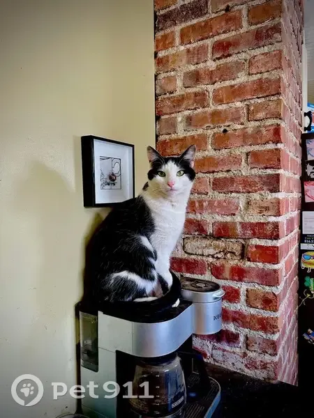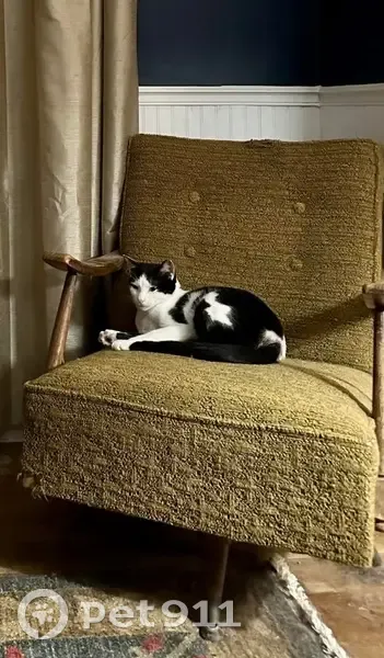 Jeff is a slim but muscular two year old tuxedo cat. No collar. He is chipped which connects to the rescue we got him from. Genus friendly with strangers in our home but this may be different on the outside. I don’t know because he is an indoor cat. He’s got out before but always comes back the same day. My partner left the kitchen door unlocked which is how Jeff got out.