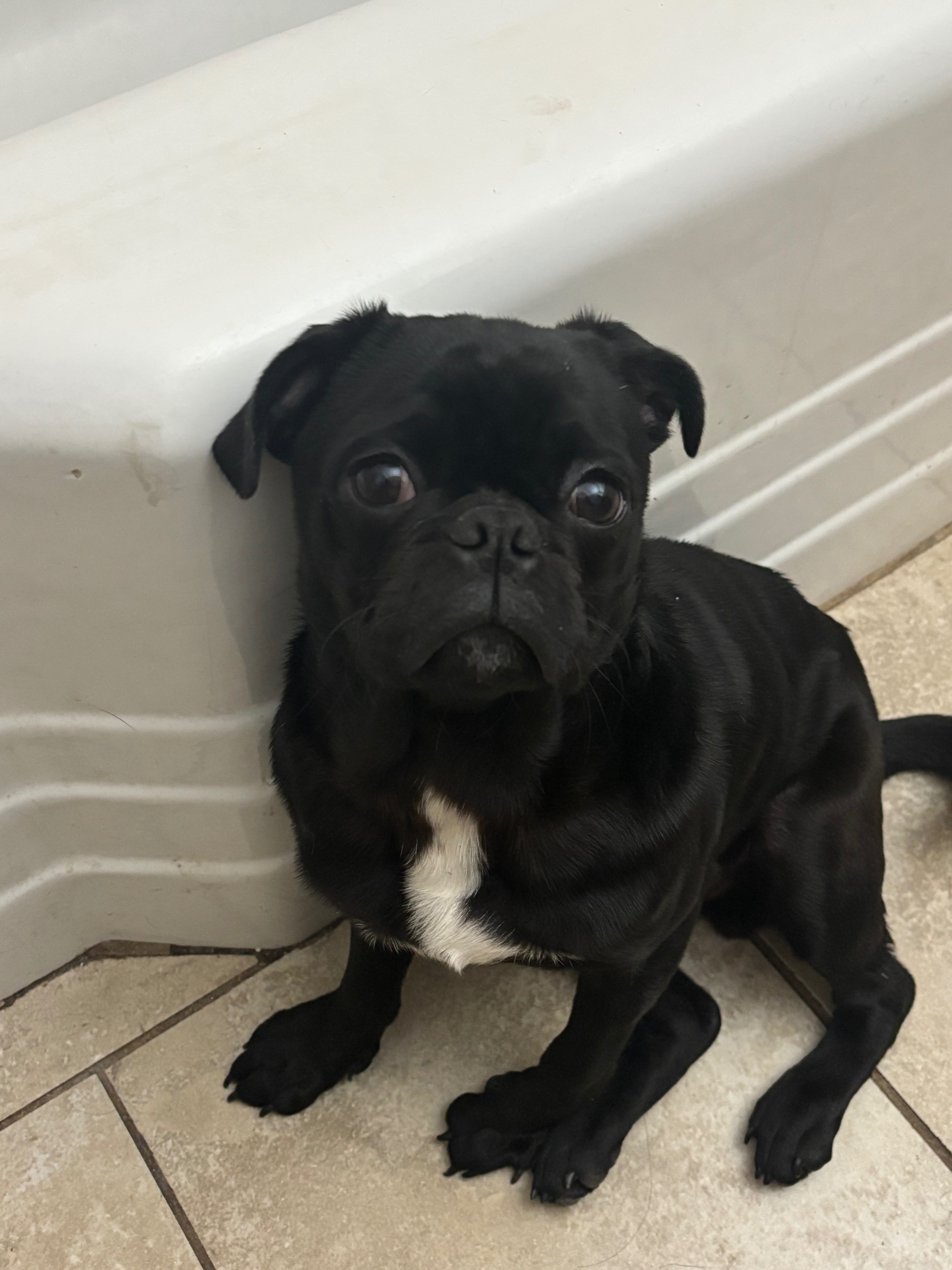 Black coat color with white on his chest. Very friendly with everyone. My husky ran out and he followed her we went after them but they were long gone we kept searching and only my husky came back. He had no collar on cause I was going to bathe him that day. He has a little bit on white fur on his chin.
