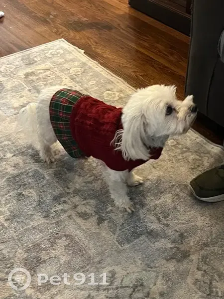 Update: Found! We woke up to our door open and our dog is missing. He’s is a white lap dog. He is wearing tags with my parents’ number in Florida. He is chipped. His name is Skippy.