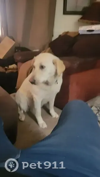 She's white with thin streaks of golden. Hevhas a quartercsize wound still about 2 inches above where her tail begins , and a BB size wound right between her ryes. She's wearing a multicolor collar ( brand is PawView) that had a transmitter connected but was removed by whomever took her. It was found out by the road in the ditch. She is called White Dog by our family because that is what my son named her. He has Down Syndrome and thought that to be the most fitting name. Other than that we had named her Cleo. We've only had her about 3 months as she was abandoned about a 10 days before the bad weather that hit in Jan. We found her hiding under our home with some injuries. We got her to come out and cared for her wounds and kept her inside our home at night and 24/7 during the bad weather, except for potty breaks. We put a collar on her and a tracker, so she had a tag with our address in case she wandered away. We didn't want the dog catcher to take ger as a stray. The transmitter was to be sure she stayed in the neighborhood and didn't get lost. She never went any further than around the block, and she had a little cat friend that we also fed and cared for. The persons who took her left the cat behind, though they were always together. She is a precious girl and we miss her dearly. She did not come in after her potty break and we thought she may have gone to visit one of her neighborhood friends, but by dark last night we knew something was wrong as she had not come to the door and barked for entry. We were told today that two women stopped in what appeared to be a white SUV and drove away with her around 630pm.