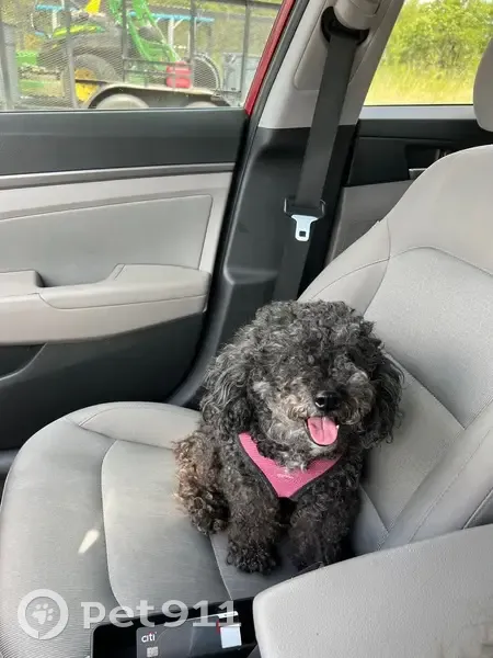 Black toy poodle with white hair scattered throughout. She is 16, blind in one eye and partially deaf. Please help me find her