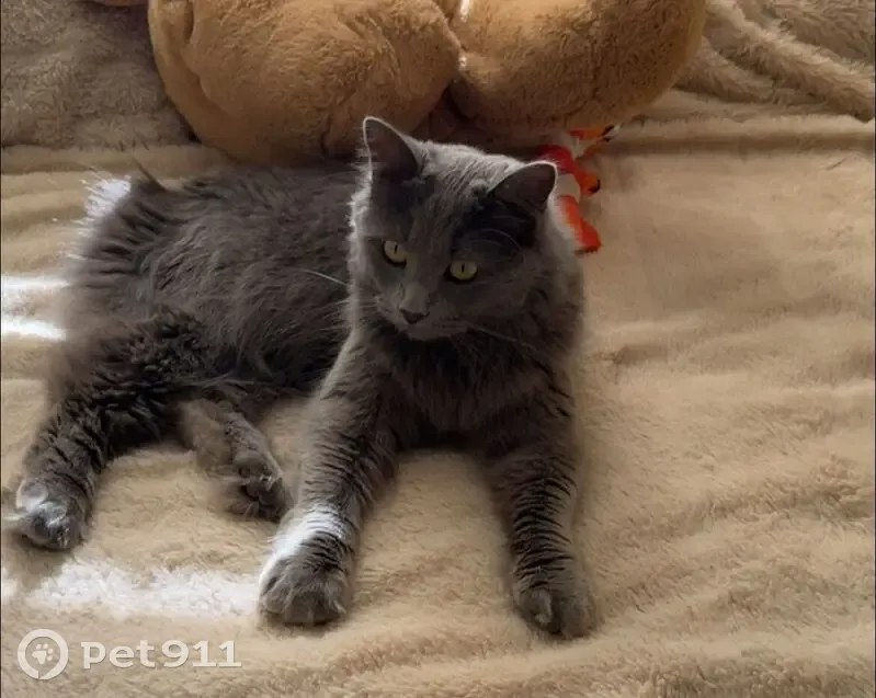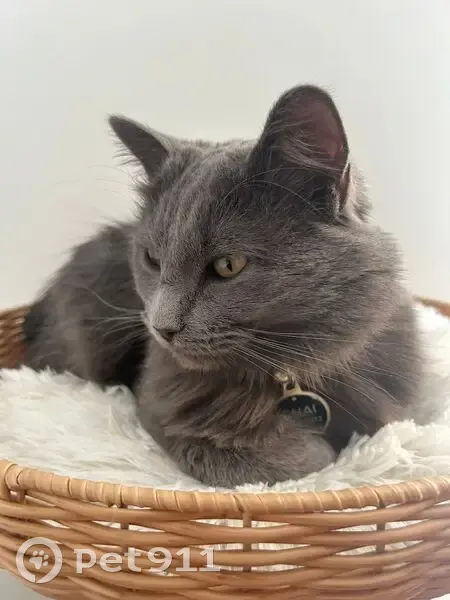 -Gray Domestic Longhair -Hazel Eyes -Dark Nose -She’s super sweet so if you call her name she’ll usually run right towards you -Does NOT have collar on unfortunately - she has no tail from an injury before adoption -Has vaccinations up to date + microchip - 5lbs -2 years old