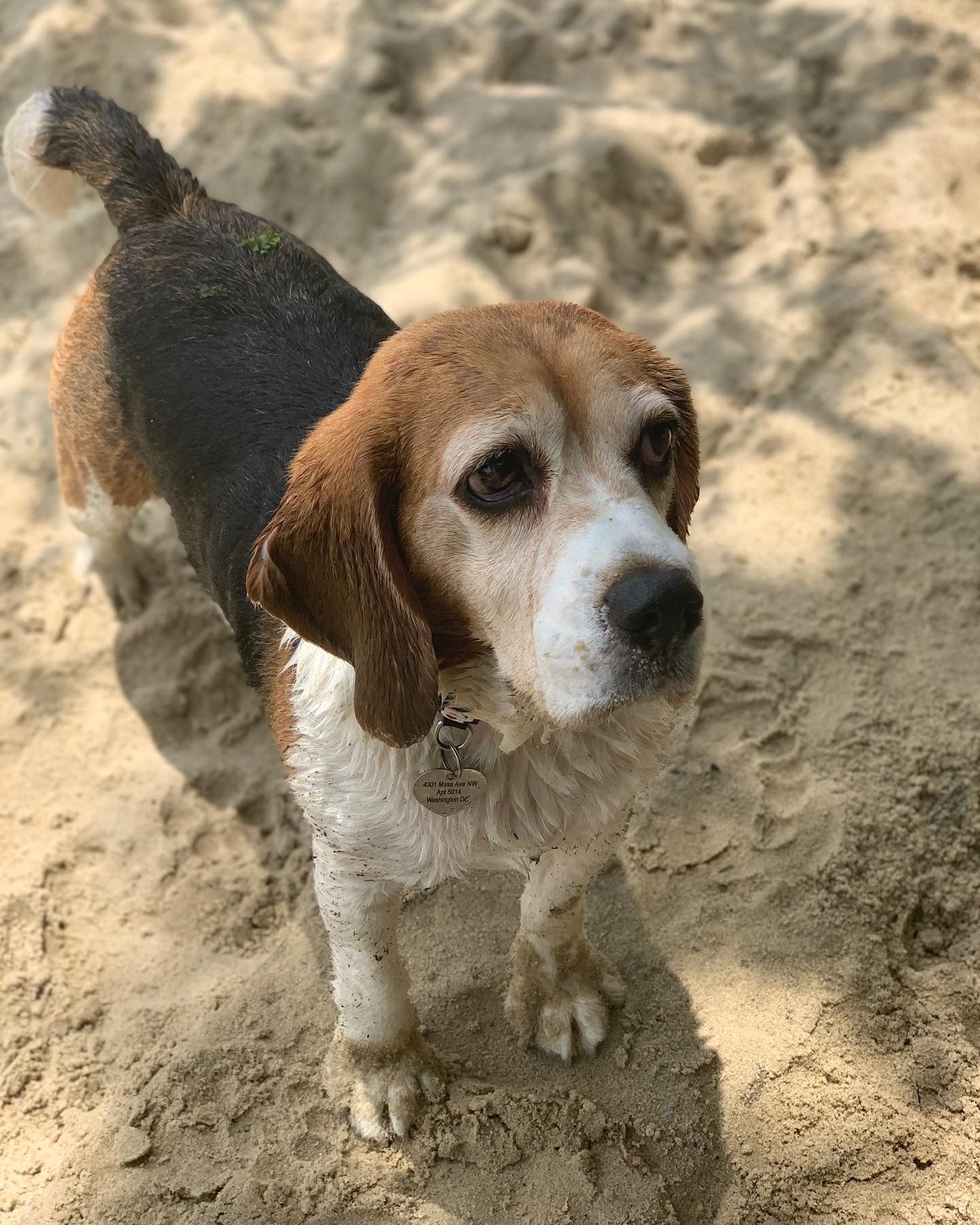 Lidy is a 10-year-old 13" tricolor beagle. She's very sweet and shy. She was wearing a dark green collar with little flowers on it, as well as her tag, a heart with her name and our contact information. She ran away from her pet sitter in the direction of Parkwood and Beach Drive.