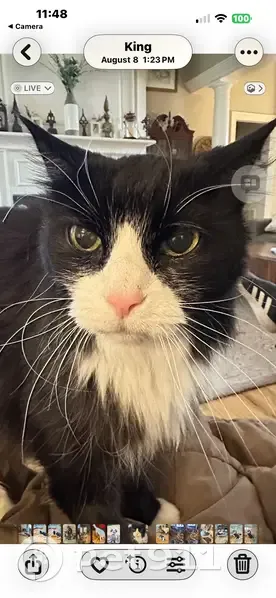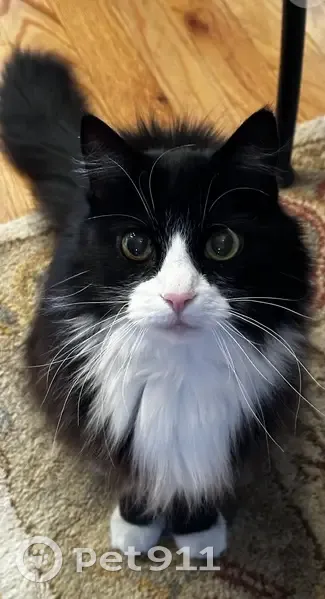 Izzy is a black long hair kitty with white paws and a white muzzle. She has a pink nose and long whiskers. She is older and while she looks full because of her fur she is more on the thin side. She is usually very friendly and sweet but may be scared.