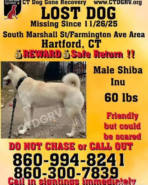 Light tan/brown coat. Short fur with fluffier tail. Has a wound on ear and scar on eye from surviving outside possibly. Apprehensive at first but affectionate. Large dog possibly a shepherd/husky/Shiba mix.