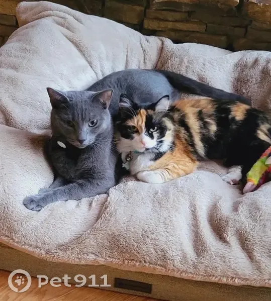 Smokey is a gray domestic shorthair, male, about 5 years old, and weighs around 15 lbs. He is friendly, microchipped, and was wearing a blue collar. He is primarily an indoor cat but has been going outside in the evenings and always returns home, which makes this very unusual. He tends to stay near the treeline.