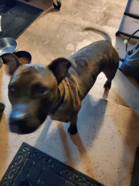 Tan coat with a white patch on her chest and paws. Pink collar and had a black leash attached. Super sweet but prefers girls over guys. Not aggressive.
