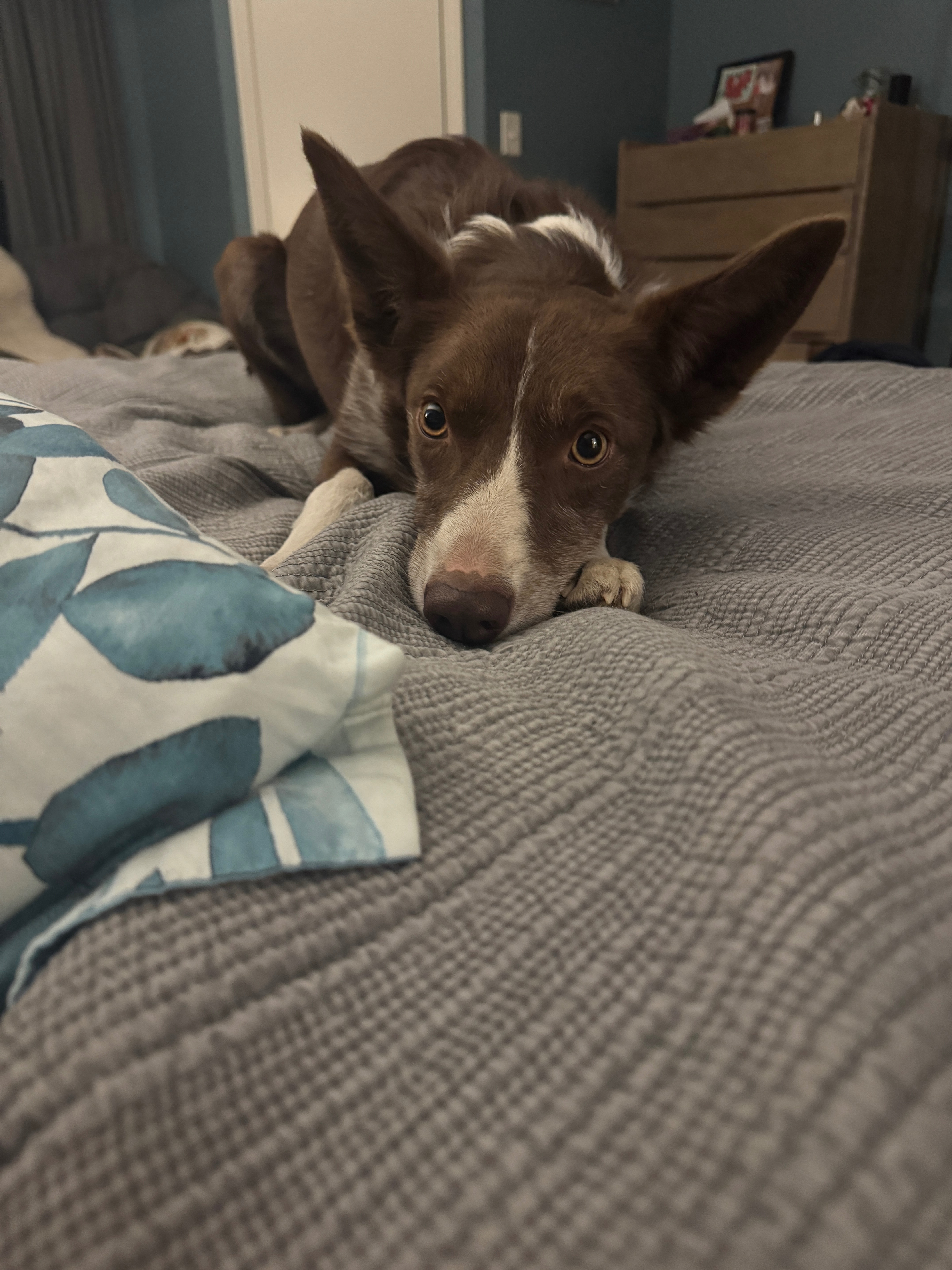Finn is a very slender dog due to his high activity level. He’s obsessed with playing fetch. His ears stick straight up and he has a white tipped tail. He’s is shy around strangers, both human and dog, and won’t approach unless he has the protection of a fence. Finn went missing between 7pm and 9pm on January 1st. He doesn’t like loud noises and usually hides on the couch when he hears them. He has a pet door that accesses the fully fenced yard. I left the house for a couple of hours and when I returned, he was gone. We live at the end of a cul de sac with spread out neighbors on 1 acre each and a small forrest behind.