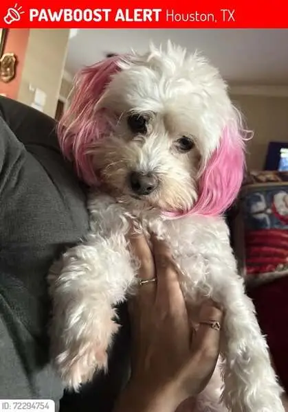 No collar, white female dog, seems to me as a Maltese, about 13 lbs, super kind, and knows how to sit. She looks as though she’s had a groom recently which is why I’m thinking she belongs to someone in the neighborhood. Please boost/share to get this post/news to her mom and dad!!! Feel free to contact me at (832)-762-9153.