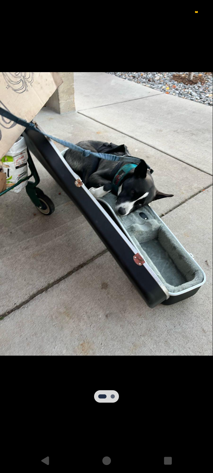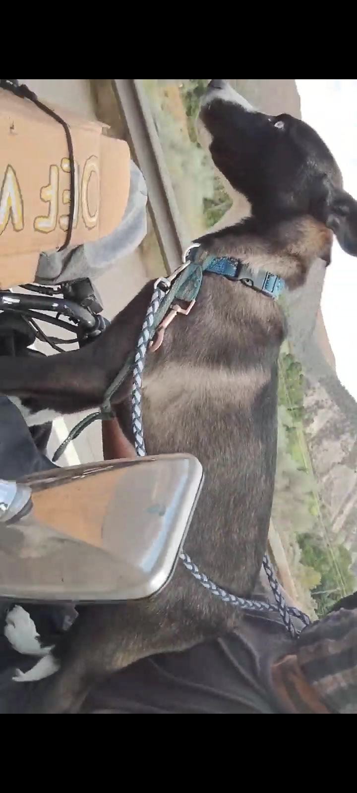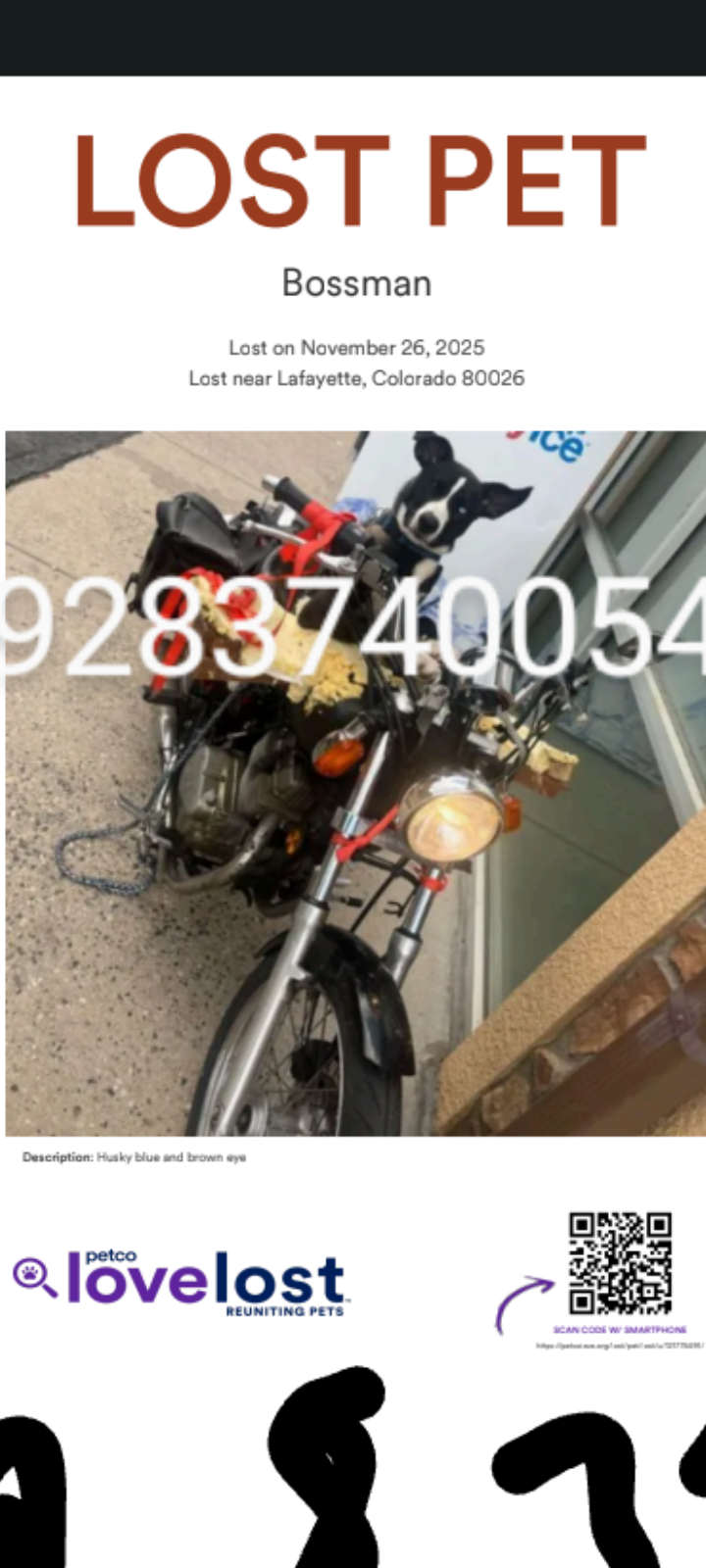 Black face white white around his nose and mouth and forehead grey and black coat and black legs white white socks and white stripe going down his belly he has two pink spots on his chin he's about 1 year and is super friendly he jumps up on people and has a nibble / chewing thing he does on hands he talks and howls and barks when he wants something humps. He was missing from across the street from Lowe's in Lafayette he's a dalmationb Shepard husky mix
