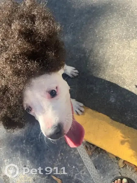 White and tan coat. One blue eye/one brown eye. Currently wearing a purple collar. Very friendly, will come to her name being called.