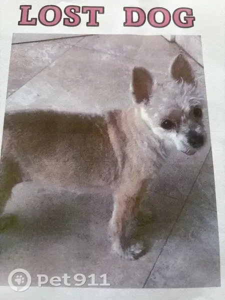 Tan & white 8 lbs 16 yrs deaf cataracts sweet but shy only 3 teeth left got out 4/8 6pm in storm ran off pink and white collar no tags