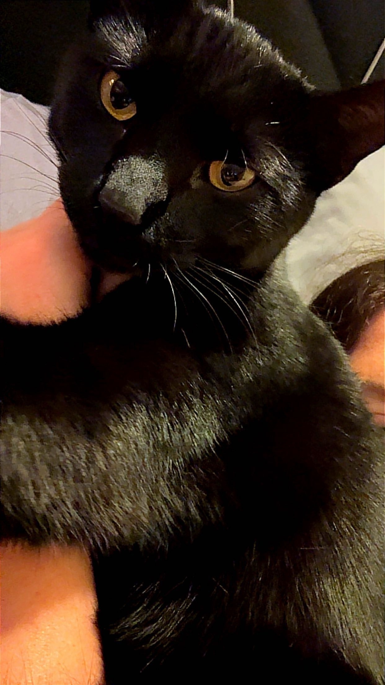 Pickles is all black with a little bit of whi...
