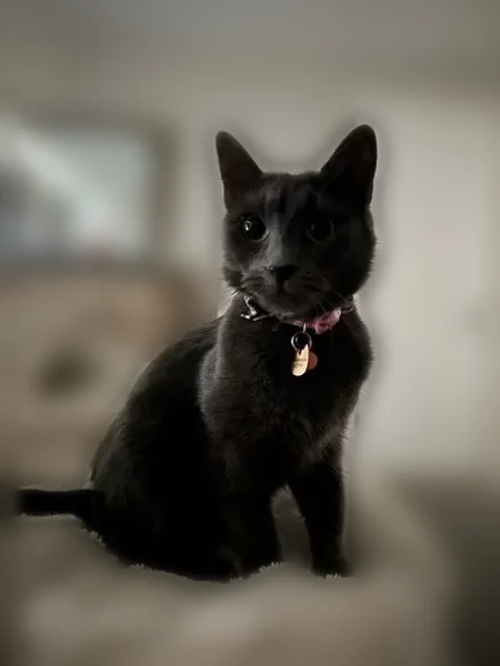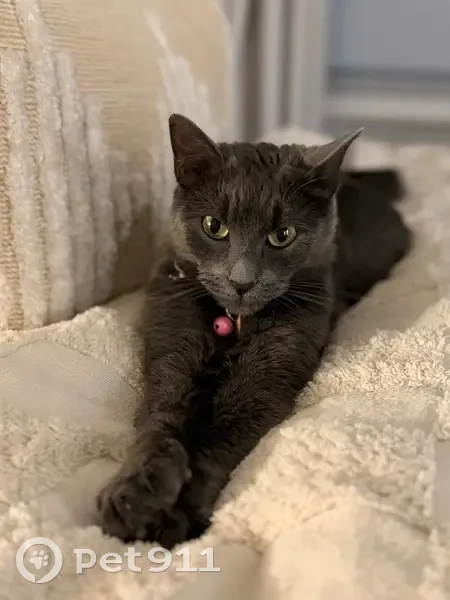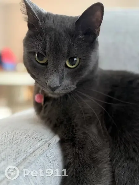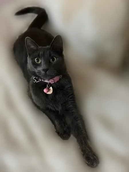 She’s a medium sized gray cat, wearing a pink plaid bow with contact information. She was last seen at 1pm outside my apartment. She’s not used to being outside and may be very scared. If you see her, please approach gently and please contact me right away