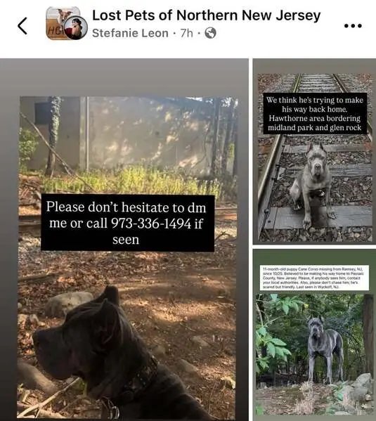 Dog has grey coat showed up with a purple collar on. Pretty skinny when she showed up so might’ve been out for a while. Very friendly