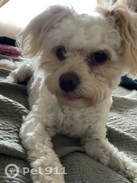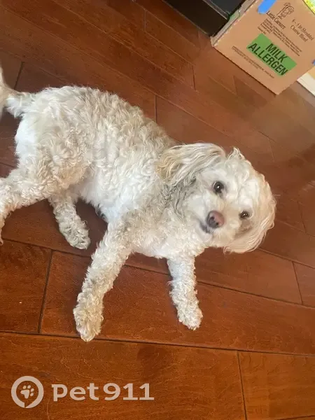 Honey ran out around 6pm November 28th, she is a very friendly white spayed female maltipoo, about 3 years old and weighs about 13-15 lbs. No clothes or collar at time of escape but she is chipped! Might have a little old shave/burn spot/patch where the hair doesn’t fully grow right on one of her front shoulders due to a poor grooming appointment a while back. If that helps distinguish her (might not have it anymore)