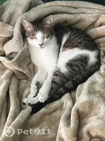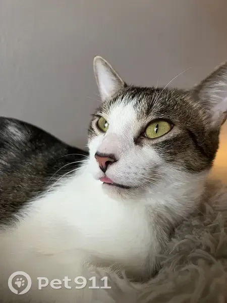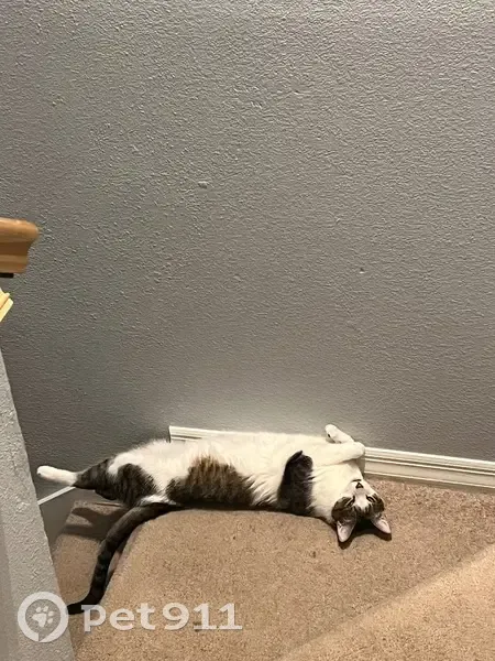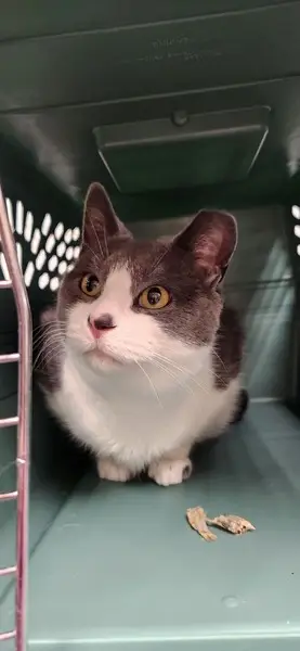 Saint is a white and gray cat who’s only 2 years old. He’s always been an indoors cat and has never ventured outside before. He is a little shy around new people so he may be a bit skittish if you come across him.