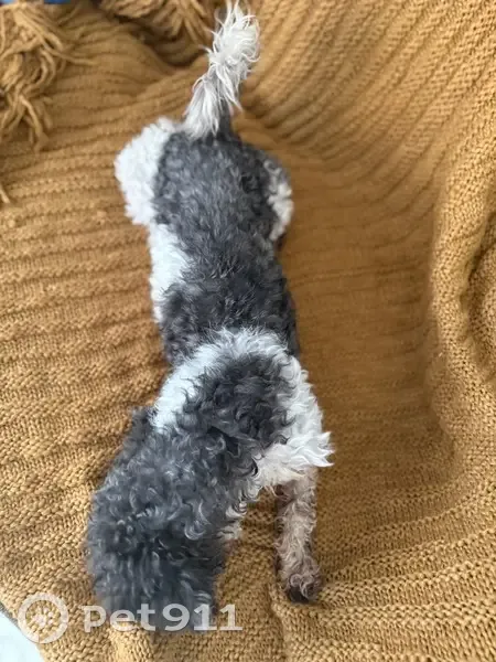 Hello I found this white with Gray male dog by Clyde Cox Elementary school on 3855 N Timberlake Dr. Las Vegas Nv 89115 Main streets Alexander & Timberlake Dr If you are it's owner please message me so he can be reunited with it's owners