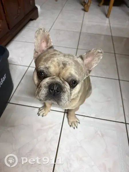 Chewy is a blue fawn Merle French Bulldog. His coat is almost leopard print as we like to describe it from his up back mostly. He’s big compared to your average Frenchie. We almost like to say he’s stocky. He’s super strong, so tugging is his thing. He must have slipped out in the busyness of morning as we headed out for school because I noticed he was gone when I got home.