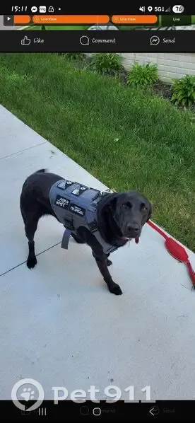 She is an all black lab with a red collar. Workers left my gate open and she got out. She has been seen last at 10am 10/24 but missing since 10/23 @ 717pm. She is friendly but terrified. My daughters have tried calling her when they saw her and she ran scared.