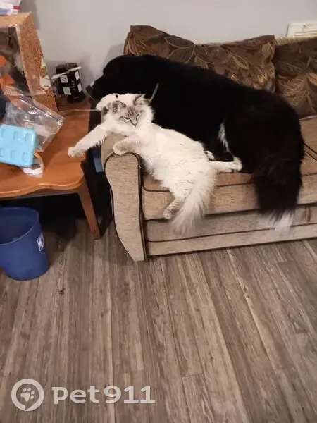 White with a dark gray face and tail. Blue eyes. Blue/teal collar. He is an indoor/ outdoor cat. Was let out and has not returned. He has a look like he is mad most of the time. His sister and other siblings miss him very much. Help me bring home my baby