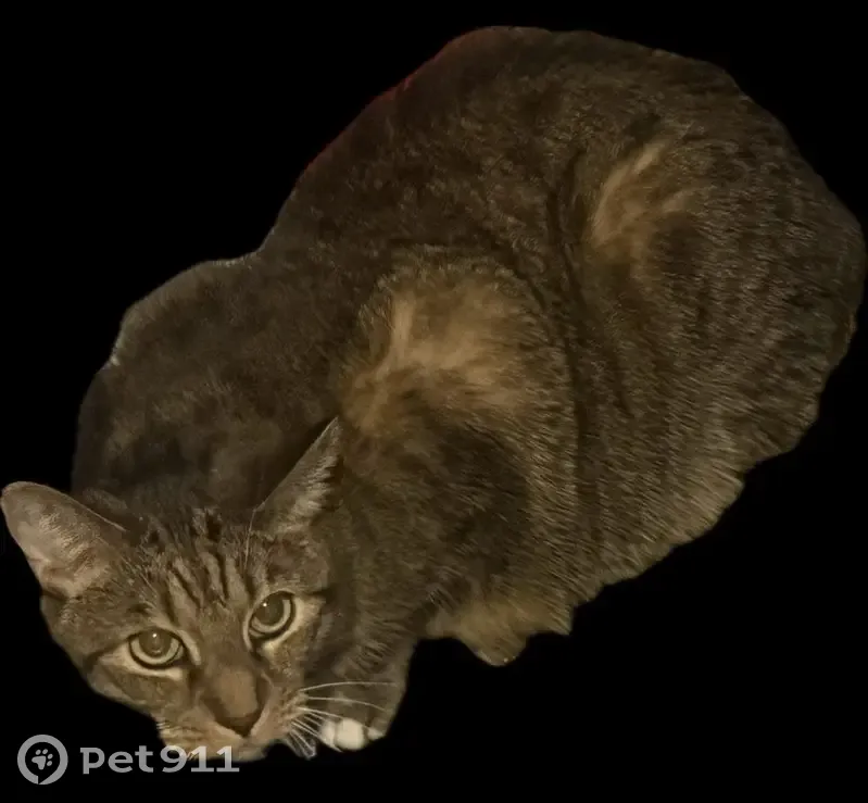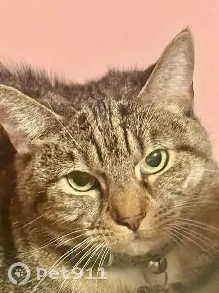 Adult cat brown stripped tabby with a little white, white top paws one a little different than the other 3. She’s shy scared and never been outside before healthy and a little overweight Fixed has ID collar and a chip that may be old so it may have moved and or I longer works Please text me with pu tires if no scans for chips done can meet at Linden police dept they have a chip detector. She never hurt anyone she is very Sweet but scared if everything. Thank you 9084063259 Rosemary