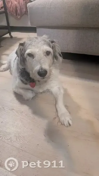 Jack is a 13 year old terrier mix, white with black spots, sometimes limps. Has a brown leather collar on with his name and my number on the buckle. He is fixed, microchipped, and fully vaxxed. Friendly, yet shy, and very food motivated.