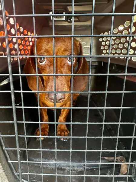 Found this sweet boy, he was running in the road with a collar and leash on, he jumped right into my car. He is white and brown/tan with light eyes and looks like a large beagle or hound.