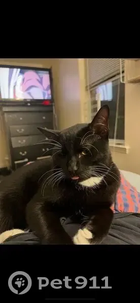 Black coat with white accents (paws and collar). Very friendly, likes all food and toys. He jumped out a window and got loose. If found please call or text 848-247-9257