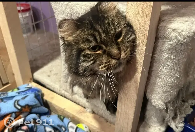 Long-Haired -Dark Tortoise-shell Senior. Tips of both ears have been frozen off from frostbite. She is missing most of her teeth. She is a rescue that has been with me for more than a year and has not been outdoors here. She is unfamiliar wuth our neighborhood so she has no homing instinct. She will likely be skittish with strangers.