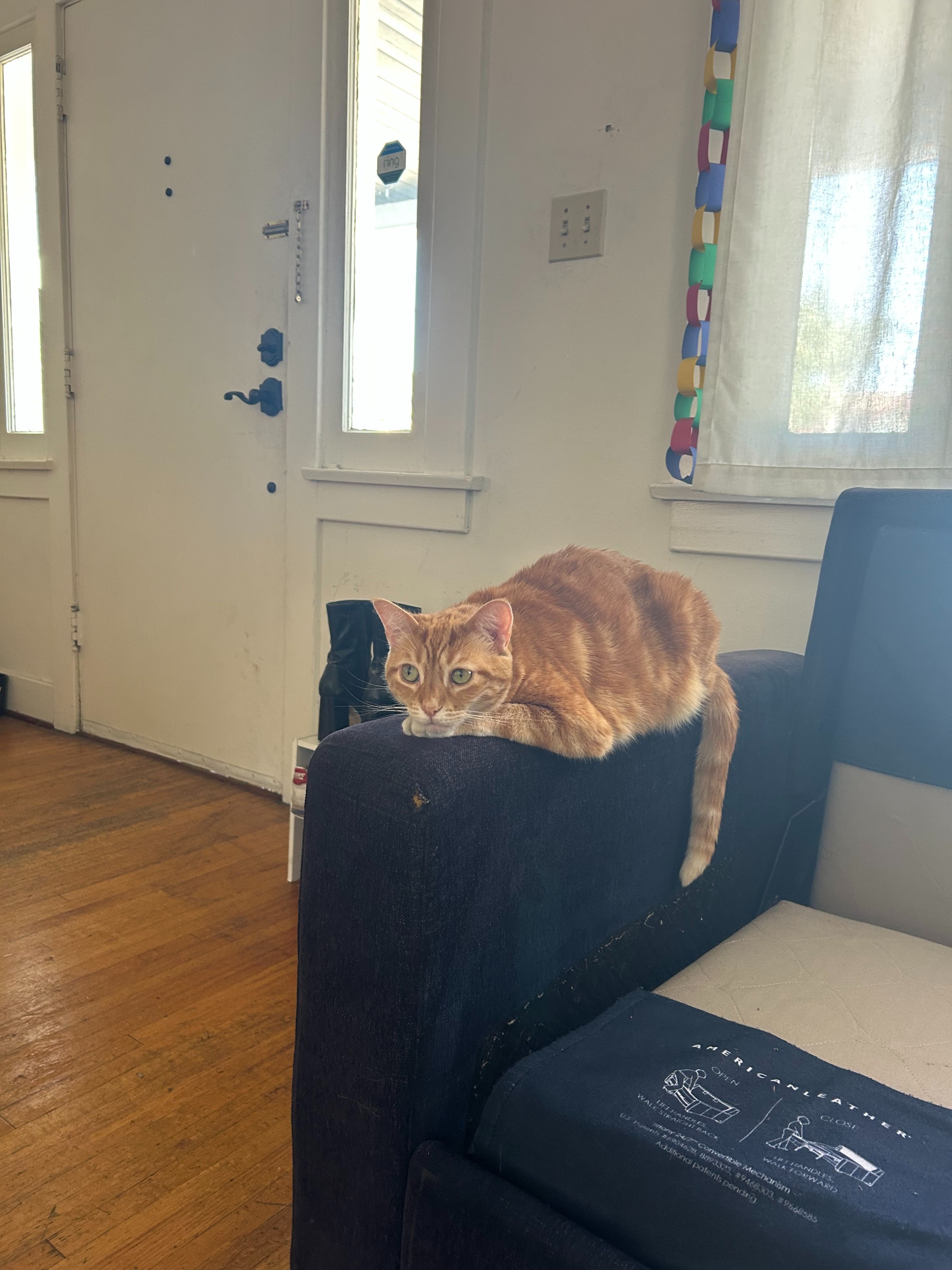 Goose is the cutest ginger tabby. She has an orange coat with white chest, tummy, and paws. She is wary of strangers but LOVES food. She escaped from our house in the afternoon of Friday, January 30th, near the intersection of Westdale Ave & N. Ave 46 (around the corner from Walts bar). She has a blue collar and a pink license/tag. Please help us find her, we love her and miss her so much!