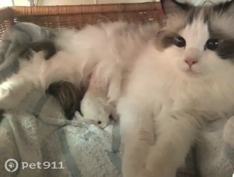Ragdoll white cat blue eyes, grey markings. Female. Had a collar with our phone number on. She is VERY sweet and we love her and miss her very much. She is 8 years old. We are offering a reward for her to be returned. . Worried someone is keeping her she is that sweet, but our hearts are broken missing her, my daughter got her in COVID.