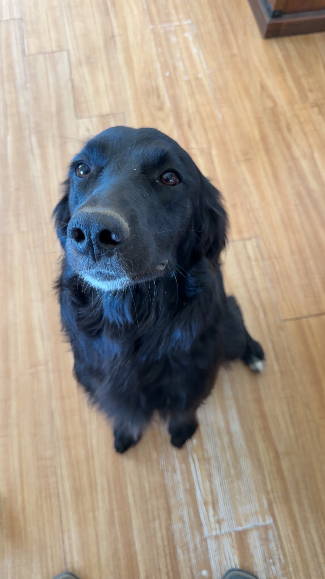 Black lab mix with a shiny coat. Has a grey f...