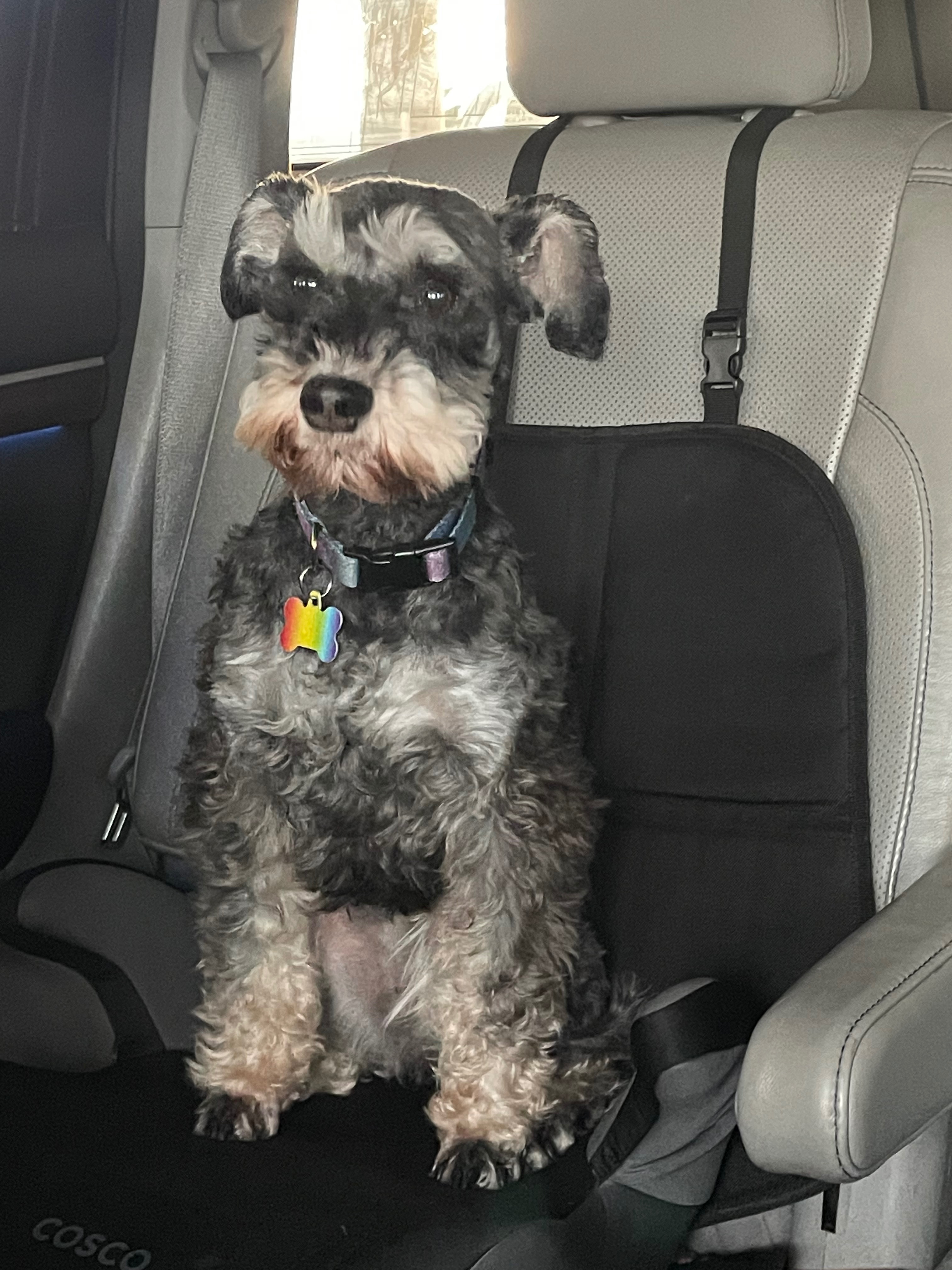 Sonic is a schnauzer, gray and whiteish. He h...