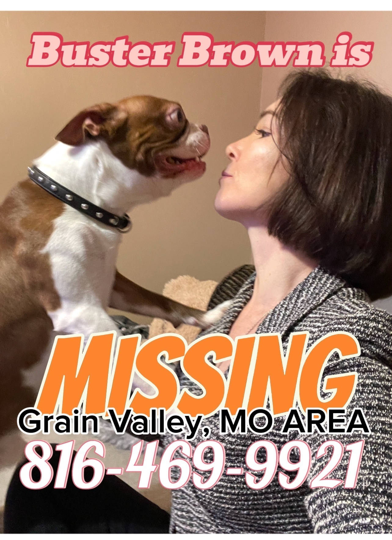 Lost Boston Terrier: Brown & W...