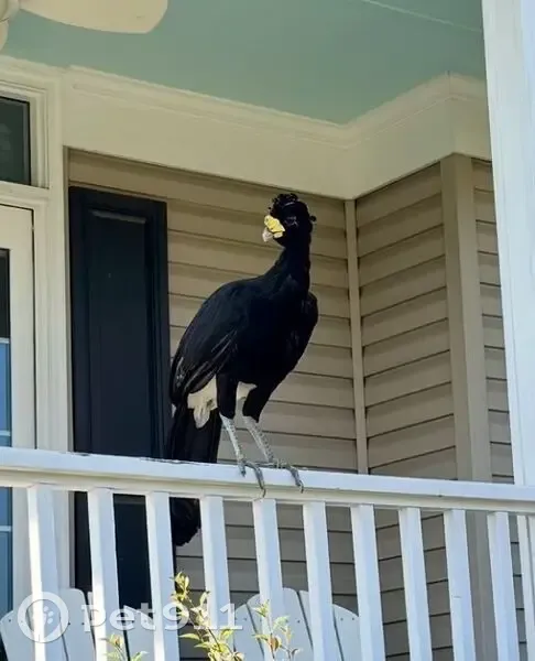 Gibert is missing! He escaped from his enclosure at a bird rescue in Cranberry Township. He does fly, is not aggressive, but very timid. He is a male Great Curassow with black feathers, white feathers on his belly, and a bright yellow comb above his beak. Please do not try to catch him.