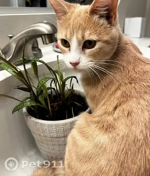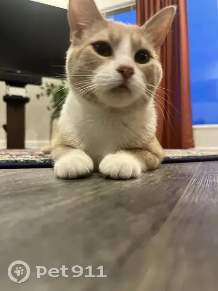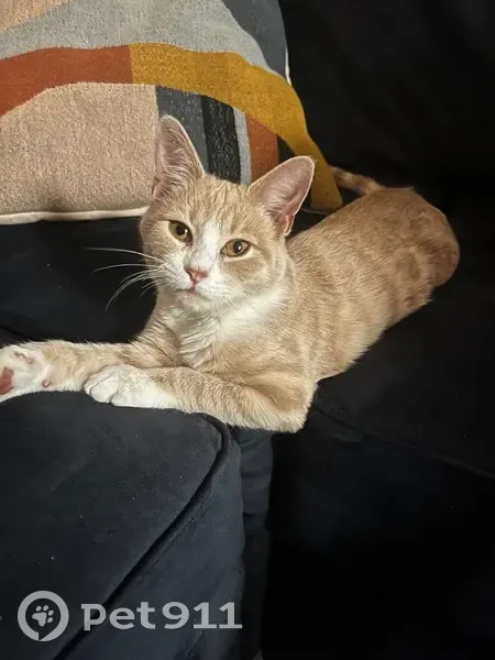 Missing cat. Name: Pickles. Age: About 1 year old Description: Small but long in build, white and light orange coloring with darker orange spots and stripes. He has striking orange eyes. Last Seen: Powell TN, 10/2/2025 If found please contact me at (401) 862-3610