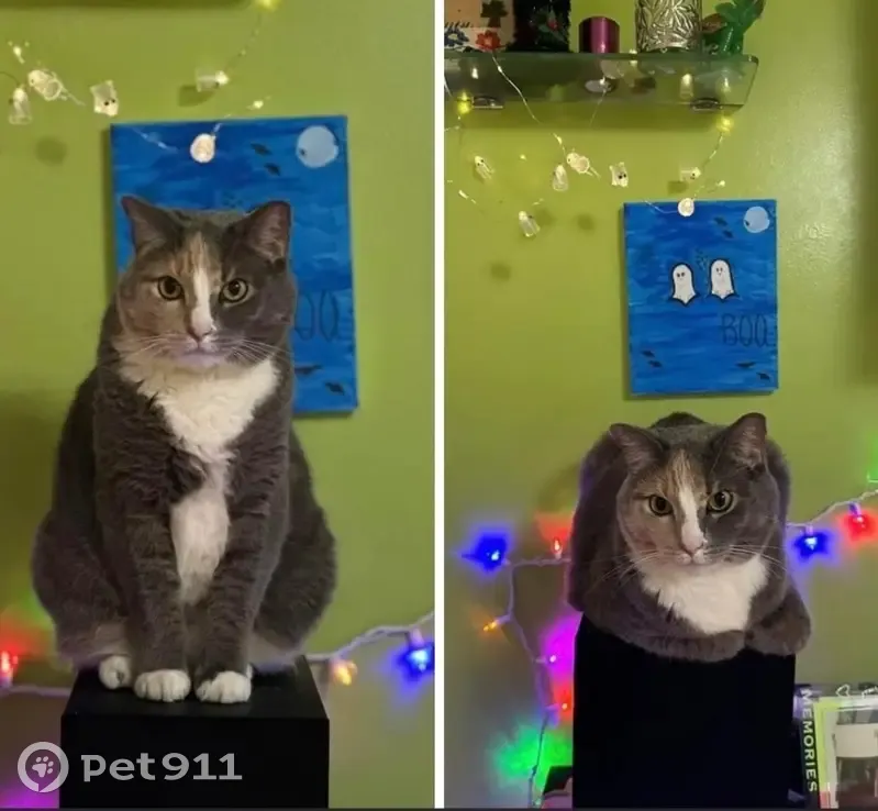 She has white paws her face is orange and grey with white has alittle pink nose. She a chubby cat super skittish but very friendly. She is a house cat never goes outside she got out from a window that was open hasn’t come back in 4 days.