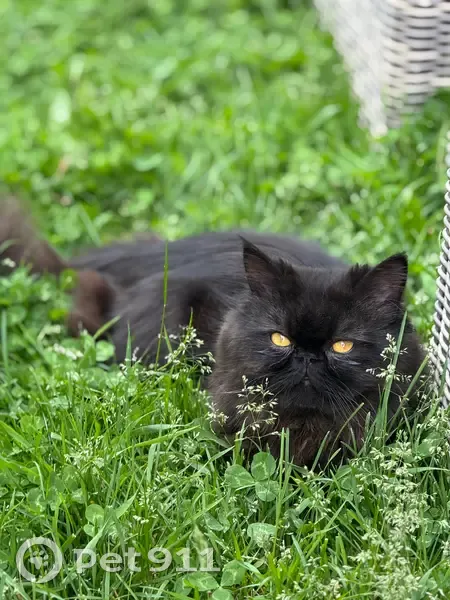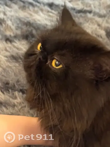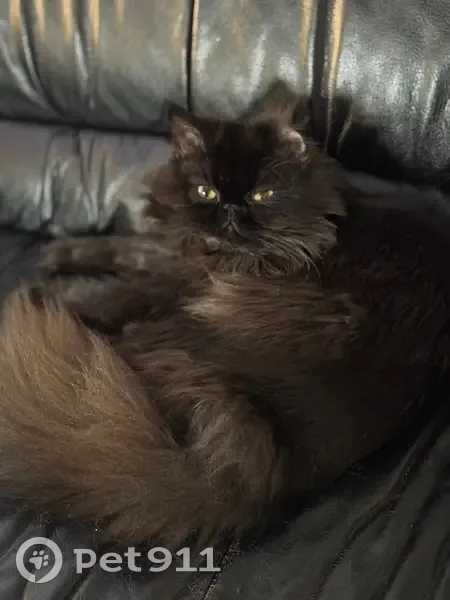 This is a black cat with a brown tinge. He has a flat nose and a long tail. There is a similar cat in our area, but he has a short tail and an elongated nose). The TAIL has a collar with a metal bone on which his name, address and phone number are engraved. There is also an airtac on the collar, which last updated its location on October 06, 2025 at 10:00 AM at 17415 Yonge Street, a car dealership. I suspect that he could have been accidentally locked in a garage or basement where there is no communication...