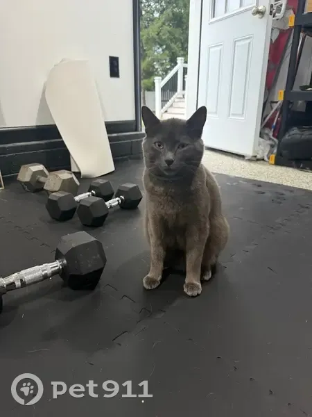 Little g has a seresto collar on, he is very friendly and gray with green eyes and very vocal. He is outdoor during warm seasons but comes inside at night, he hasn’t been home in 5 days now and always comes when I call. He hangs around Westmoreland road by the school in the woods and by the church.