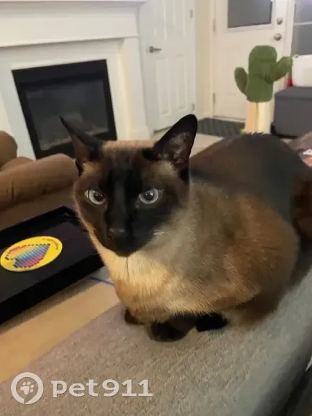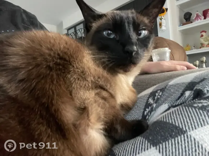 Chocolate Point Siamese (mostly dark brown fur, some tan cream but he’s pretty dark. Bright blue eyes and a slightly chubby on his belly.) He’s 10 years old. He got out WITHOUT his collar. We miss him dearly if you have info. Call or txt me 647-972-1532 thank you