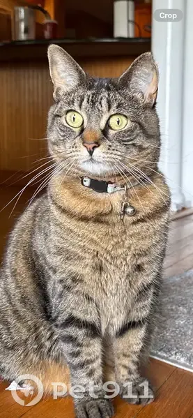 She is a tabby cat who is 6 years old and chubby. She is chipped and fixed and when last seen had a light collar on with a bell She loves to eat (especially churro treats) and is soft and fluffy.